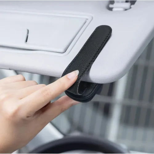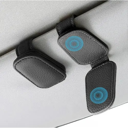 Удобна и стилна поставка за очила за автомобил, която е изработена от висококачествена италианска кожа. Със силни магнити и компактен дизайн, тя предпазва очилата ви от надраскване и осигурява лесен достъп по време на шофиране.